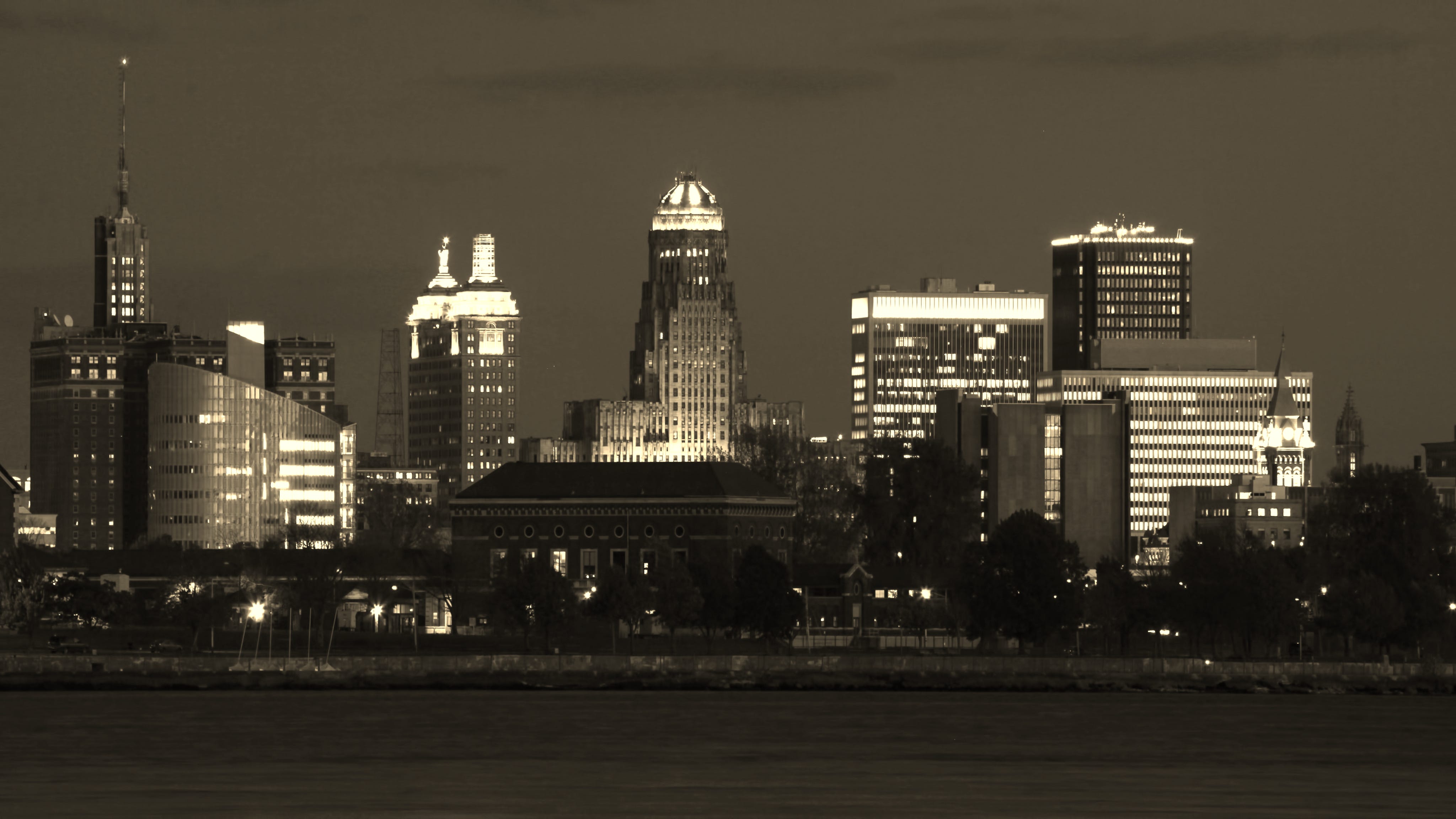 The Buffalo, New York city center as darkness falls. Courtesy of Shutterstock.