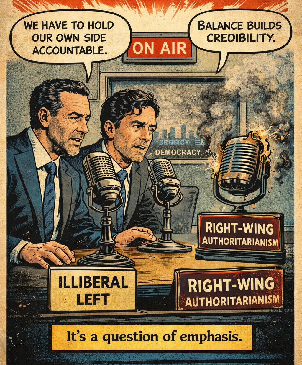 I was listening to an interview in The Atlantic between Tim Miller and David Frum where they fixated on a nebulous “illiberal left.” I respect both of them. They have been clear-eyed about the dangers of Trumpism. But I find myself asking a harder question: in moments like this, are they strengthening the pro-democracy coalition or unintentionally narrowing it by reinscribing frames that originated in right-wing media ecosystems?
