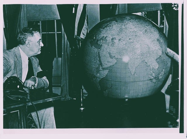 1942 - Franklin D. Roosevelt in Washington, D.C. via Wikimedia Commons.