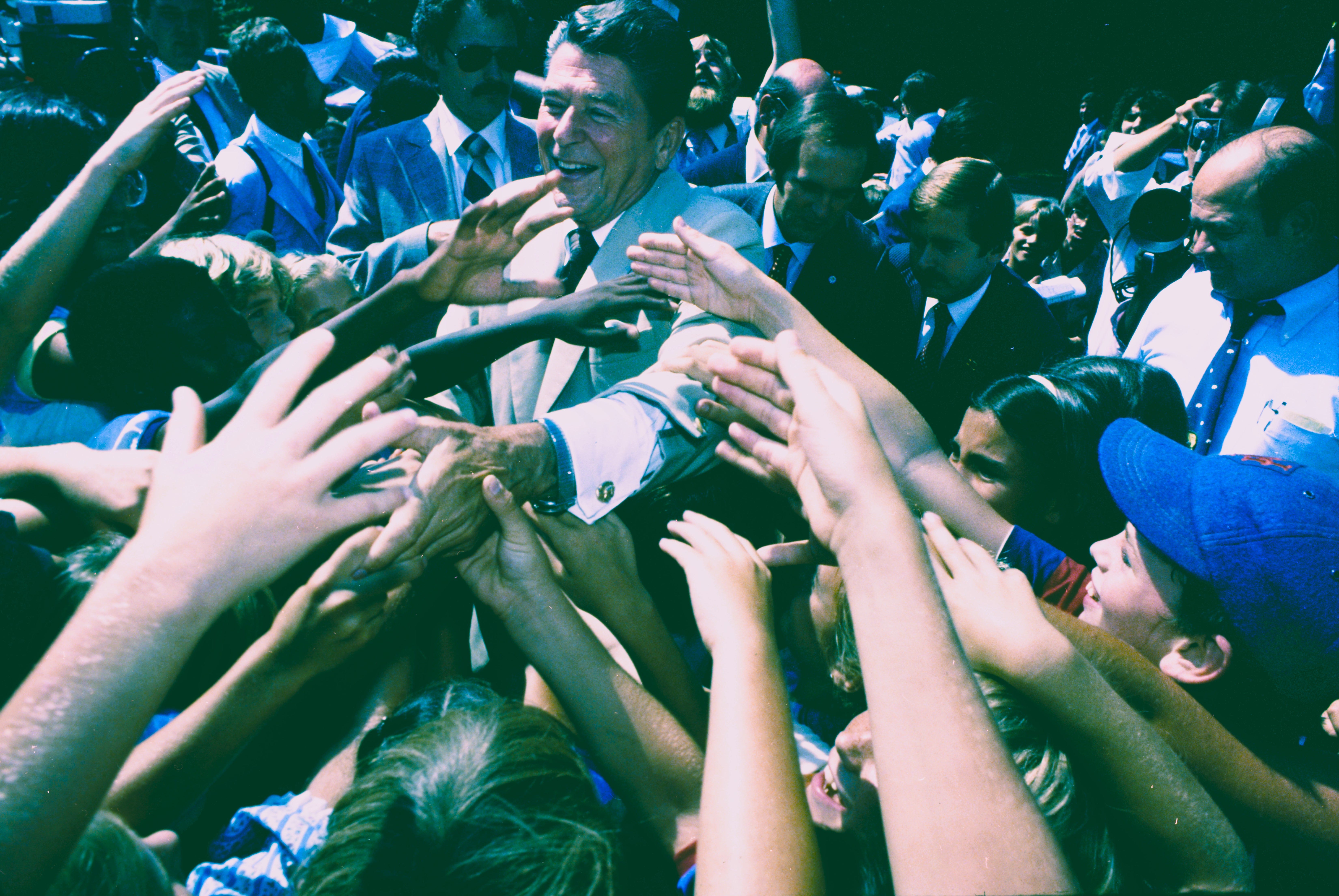 Ronald Reagan Shaking Hands with Supporters on a Campaign Stop in Indiana. Wikimedia.