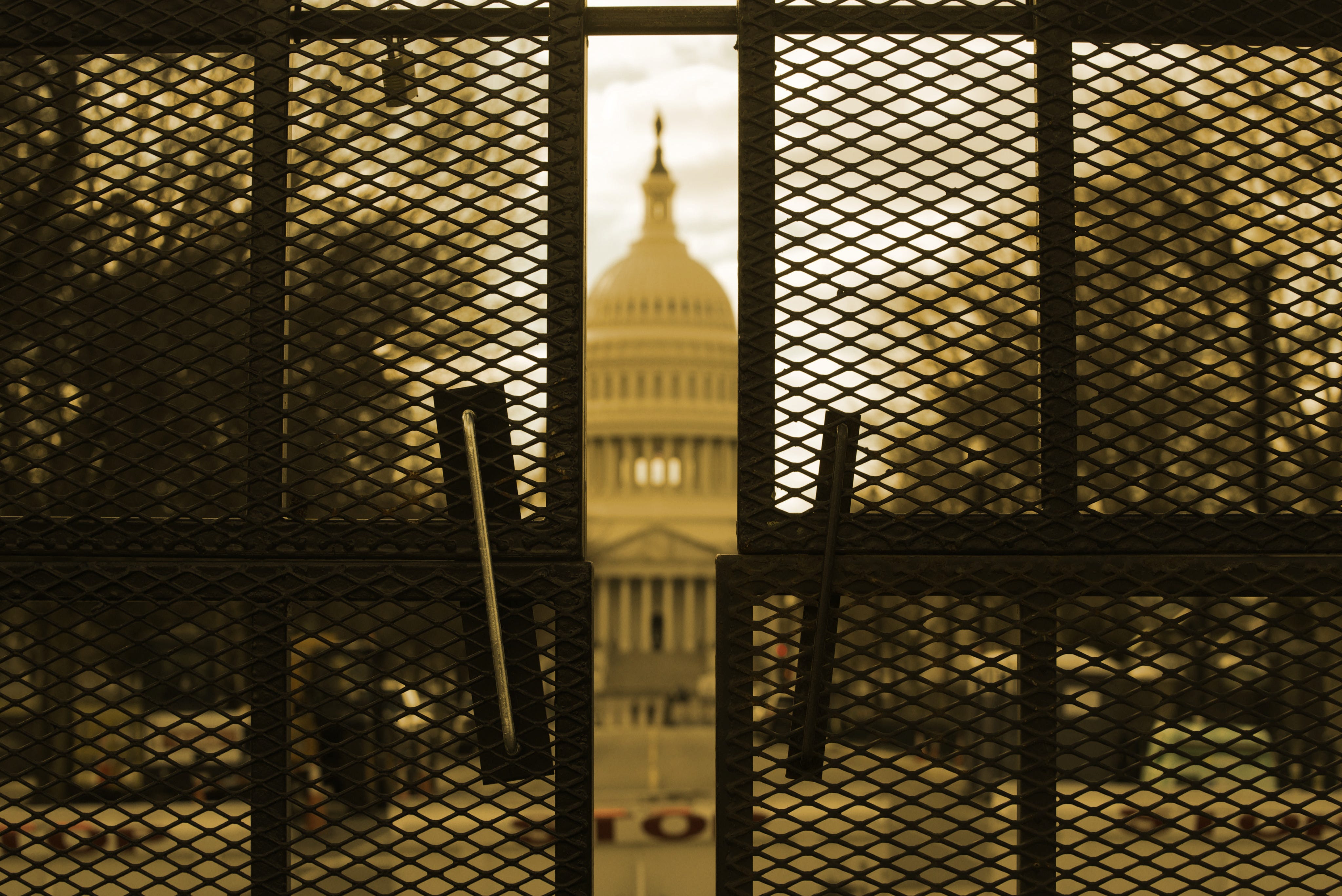 WASHINGTON, DC - March 6, 2021: A metal fence surrounds the U.S. Capitol complex after pro-Trump supporters stormed the building on January 6, 2021.