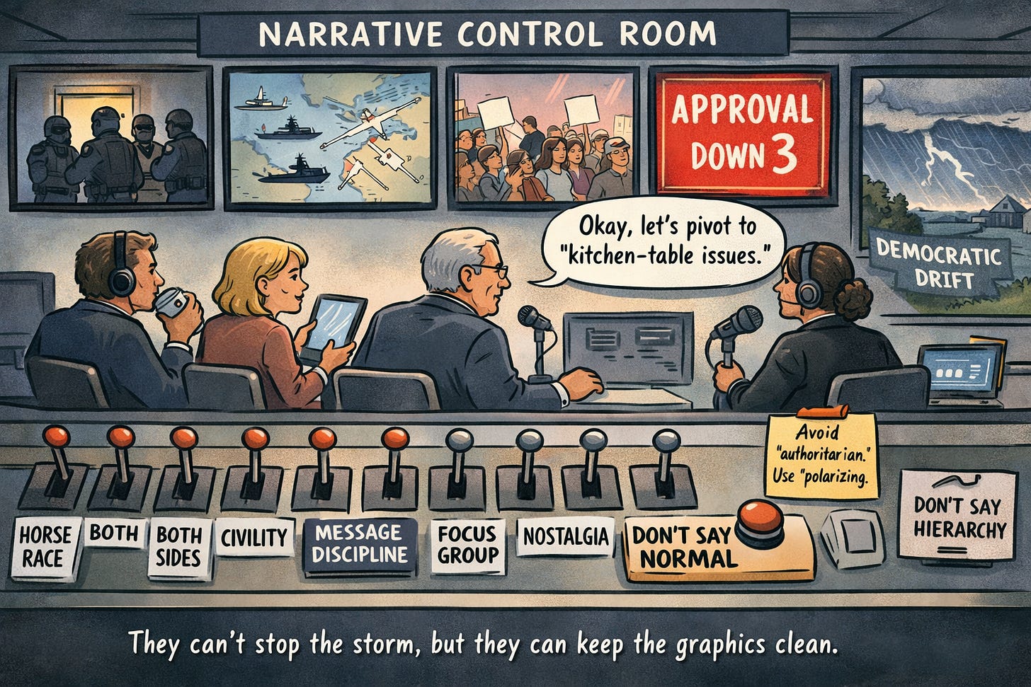 The problem is that this kind of historical realism is not the preferred posture of mainstream political storytelling. Publications built around a residual American exceptionalism as well as an assumption that the system is basically healthy and merely needs better management will default to scoreboard narratives because they feel safer. They reassure “middle America” and anxious centrists that the country is still normal, that the institutions are still steering, that the electorate is still mostly persuadable.