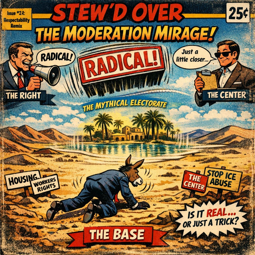 You see this same thinking in institutional memos and “pragmatist” strategy briefs. In response to ICE violence and escalating tactics, centrist groups like Third Way and Searchlight Institute called on Democrats to move past “Abolish ICE” talk and into “reform and retrain” speak. I am not saying that slogans are policy. I am saying that this impulse to police optics, to temper criticism, and to safeguard the center is taking place while people are living through the consequences.